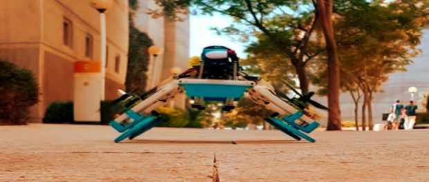 „Die vier Flugarme der Drohne Flying Star sind nicht nur mit Propellern, sondern auch mit Rädern versehen. Nach der Landung winkelt die Drohne die Arme an und wird zu einem wendigen Fahrzeug. Propeller und Räder werden von denselben Motoren angetrieben.“