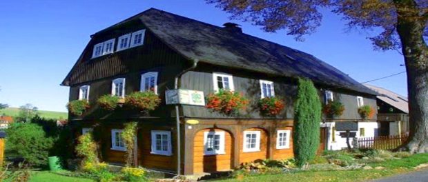 „Das sogenannte “Umgebinde” umbindet die Holzblockstube, welche slawischem Urspungs ist. Dieser Konstruktion verdanken die Holzhäuser ihren Namen. Das Obergeschoß ruht auf dem Umgebinde und ist nicht mit der Blockstube verbunden. An vielen Häusern sehen Sie im Obergeschoß eine Fachwerk. Das haben fränkische Siedler hierher gebracht.“